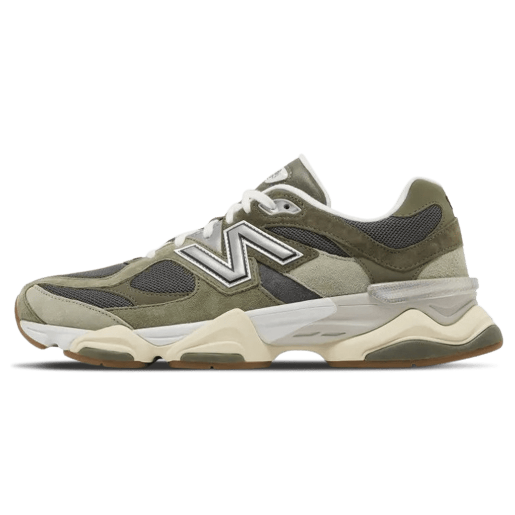 The New Balance 9060 'Green Grey' blends retro-inspired aesthetics with modern performance for a bold yet versatile look. Featuring a mesh and suede upper, the sneaker showcases earthy green tones complemented by soft grey overlays, creating a refined and contemporary feel. The exaggerated midsole, influenced by Y2K running styles, adds a statement-making touch while ensuring all-day comfort.